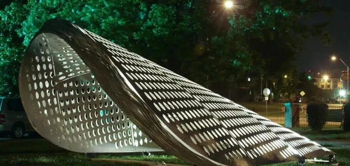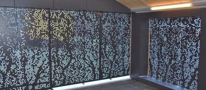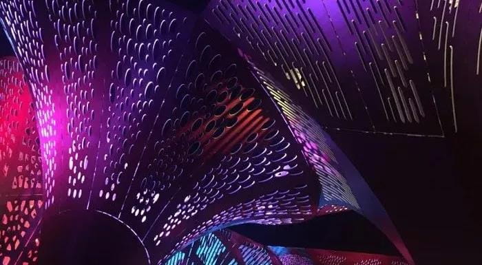 穿孔板還可以為雕塑裝置等帶來不俗的表現(xiàn),與燈光,光線,水霧等結(jié)合絕對會(huì)給你帶來前所未有的視覺感受,仿佛打開了另一扇空間的門。