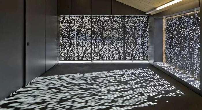 穿孔板特殊的效果通過圖案,光線的交流打破了室內(nèi)外的界限,讓細(xì)節(jié)之處耐人尋味。墻面,樓體,頂面都可以運(yùn)用,你不妨試試。