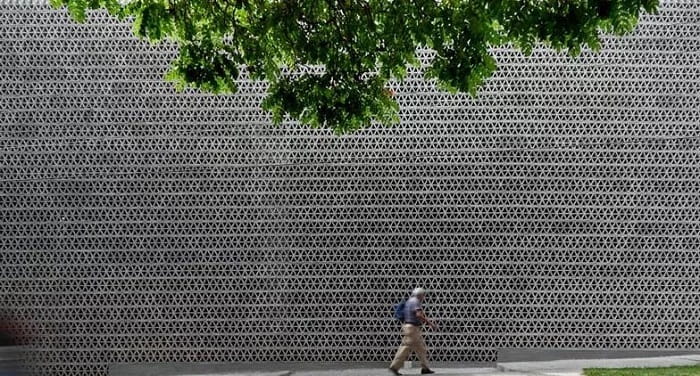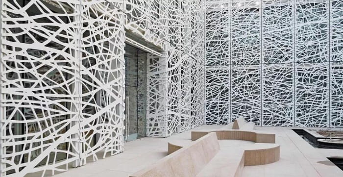 我們經(jīng)??匆姷哪切﹫D案精美的圍墻,建筑幕墻,雕塑,燈具等等,它們有一個(gè)共同的特點(diǎn)—穿孔板,雖然名字不夠出彩,但是它絕對是集美貌與才華與一身。