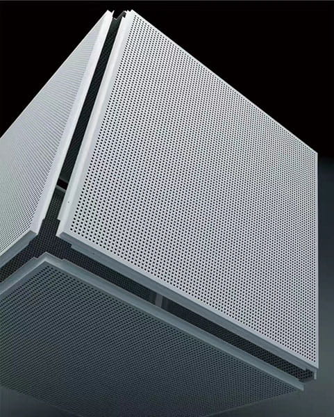 ■ 可選擇布孔,穿孔率在1%至25%,具有吸音功能,方板天花板背面貼上非助然之吸音紙或吸音棉會達到最佳的吸音效果;